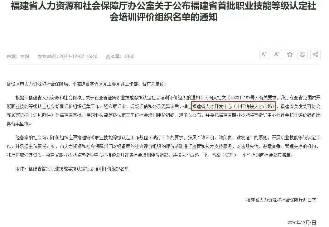 发证机构从人社部变更到第三方机构