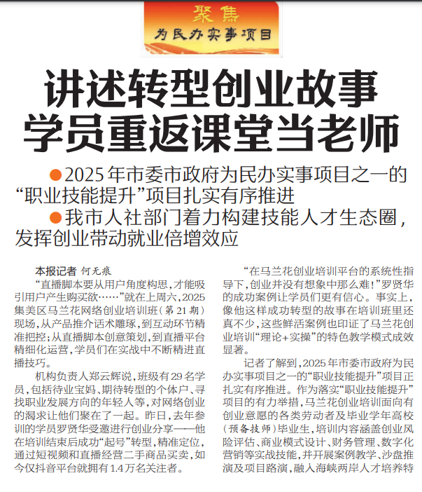 云光马兰花学员上头条!重返课堂分享转型创业成功之路