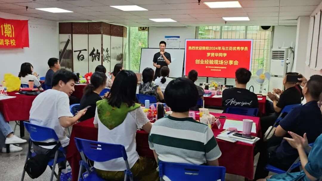 6月12日,优秀学员罗贤华受邀到云光培训学校《2025集美区马兰花网络创业培训班(第21期)》现场进行创业分享,讲述他在培训结束后成功“起号”转型,精准定位,通过短视频和直播经营二手商品买卖的蜕变转型创业故事,仅抖音平台就拥有1.4万名关注者。
