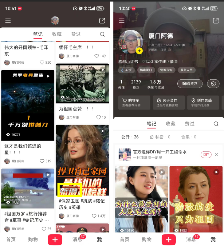 游金德同学参加完马兰花网络创业培训后,小红书账号访问量达到37万+