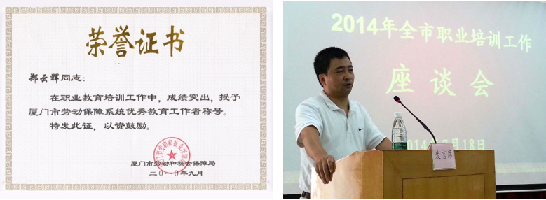 2014年受邀参加厦门市人力资源和社会保障局主办的《2014年厦门市职业培训工作座谈会》,并作为民办培训学校代表就《职业技工学校毕业生就业突破》发表演讲。