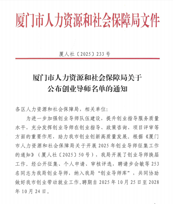 2024年起担任厦门市创业与培训协会副会长。